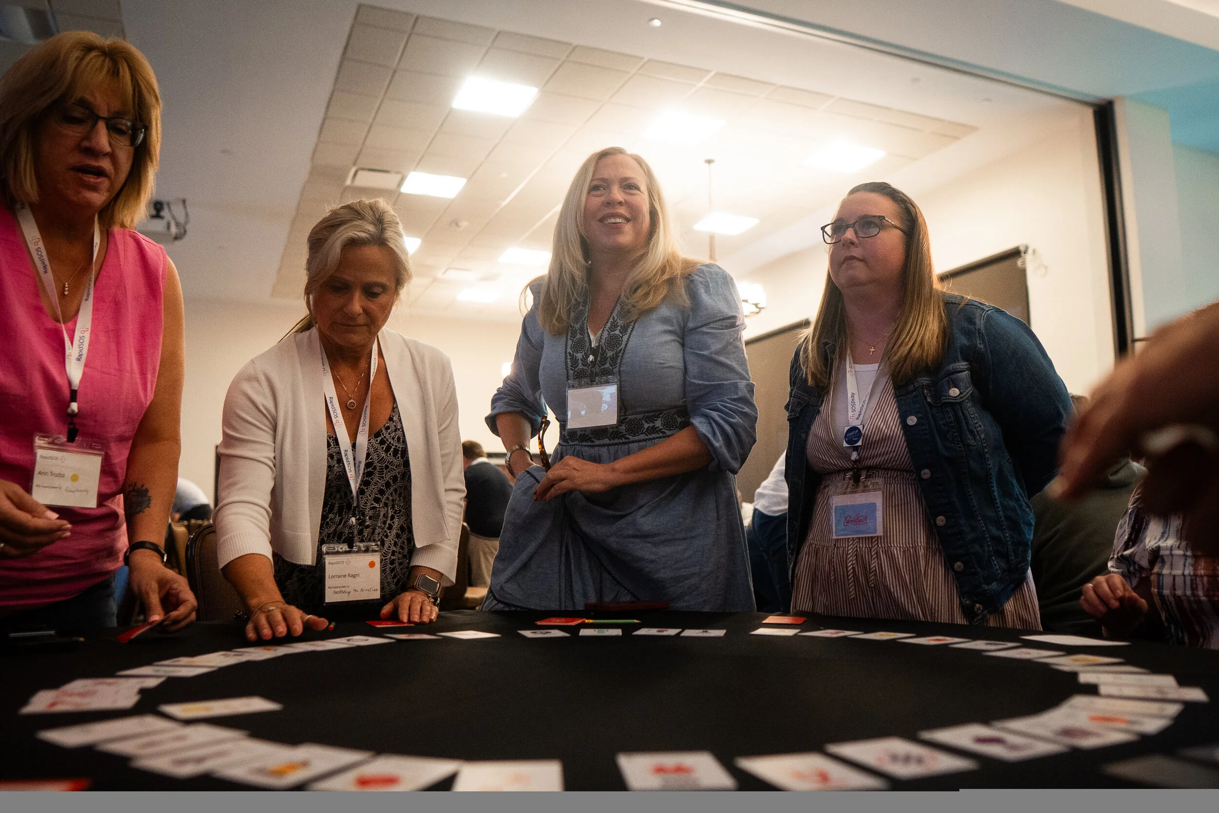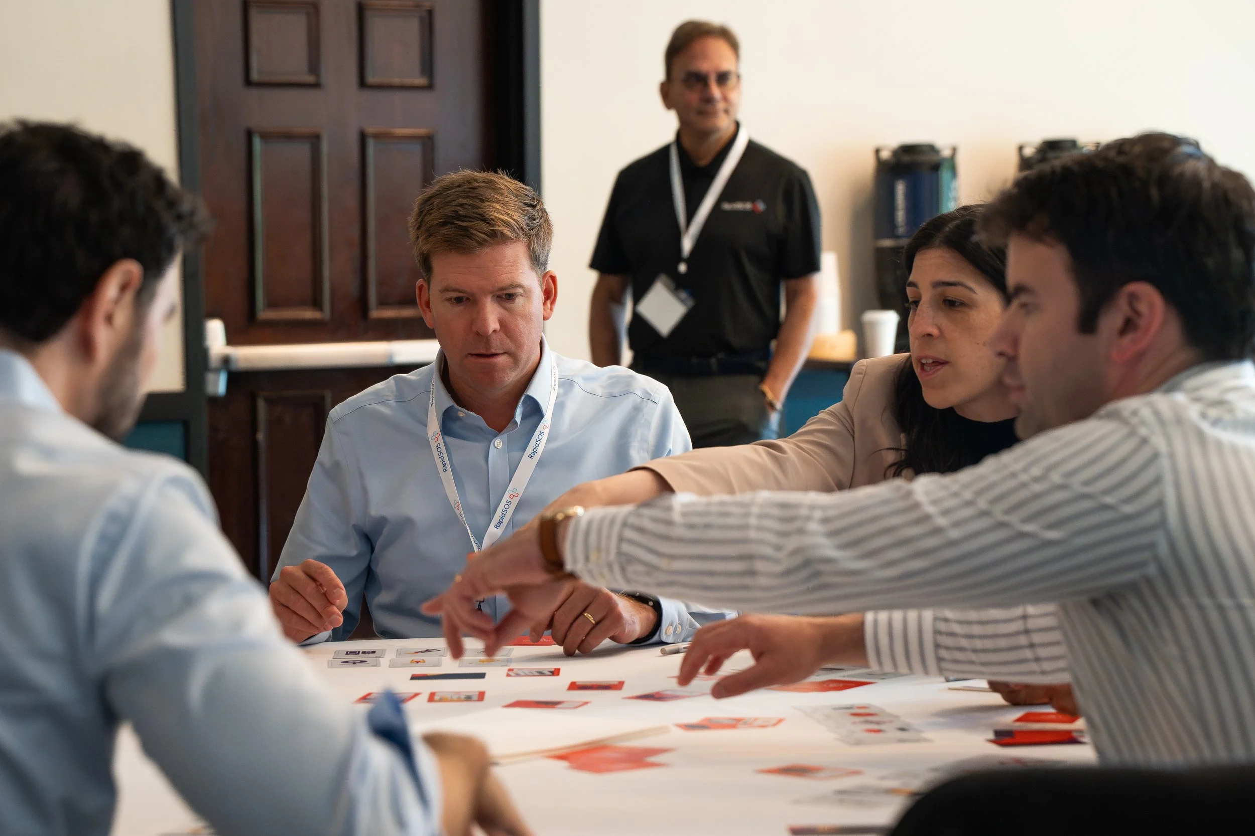 This workshop can be customized to focus on different aspects of communication and collaboration in growing teams. It has been done with smaller groups of 30 and with as many as 300. The only requirements are having a clear table surface and groups of 6 to 10 people. All other messaging and the length of the workshop can be customized to fit your company and specific event messaging.